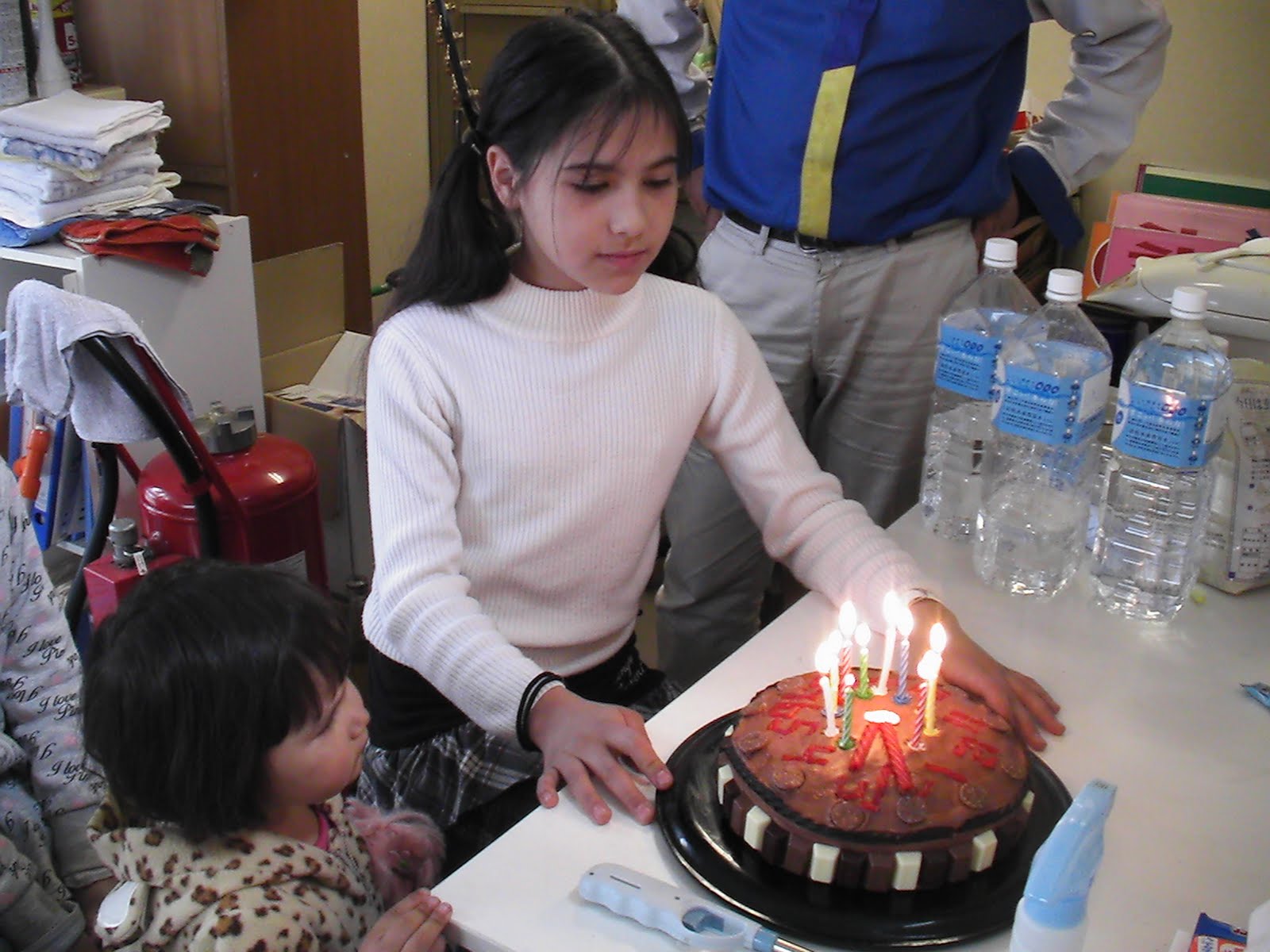 We drove all the way to Takachiho to help her celebrate. It was a major birthday, so it was worth the trip, and the kids LOVE going to Takachiho, so they were happy too. I took only Amy and Lena, and left Erica with her Daddy. Victoria's place is big and rangy and chasing a toddler there means literally chasing - every five minutes or so you think, 'Where is she' and off you go on a kid search. I don't know how Victoria managed to raise toddlers without going mad (perhaps she didn't, or perhaps she locked them inside more often). Anyway, to enable myself to sit on my fat bum for longer than three minutes at a time, I didn't bring her.